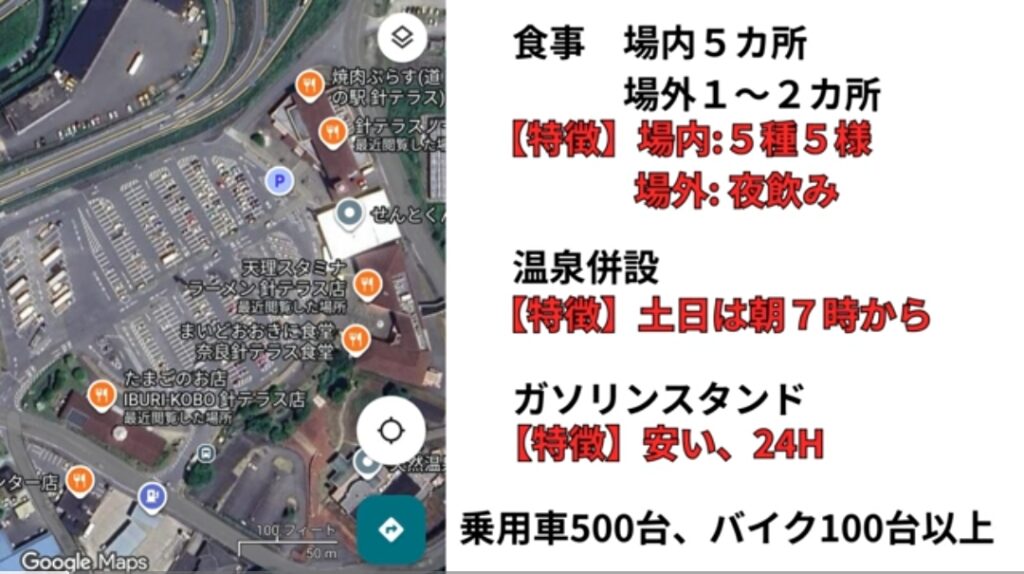 温泉と外飲み、近畿のお土産集結、安いガソリンが魅力の道の駅。深夜でもライダーが多く集結する関西のライダーの聖地と呼ばれる。